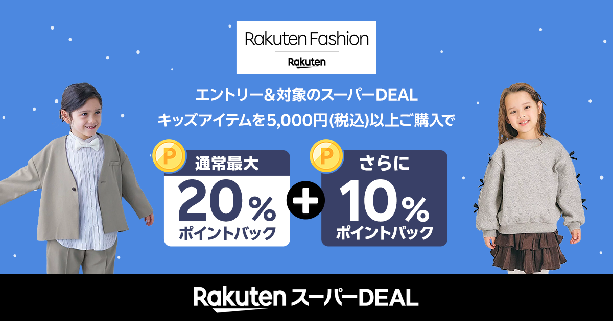 【楽天市場】楽天スーパーDEAL|エントリー&楽天スーパーDEAL対象のRakuten Fashionキッズアイテムを5,000円(税込)以上購入で+10%ポイントバック