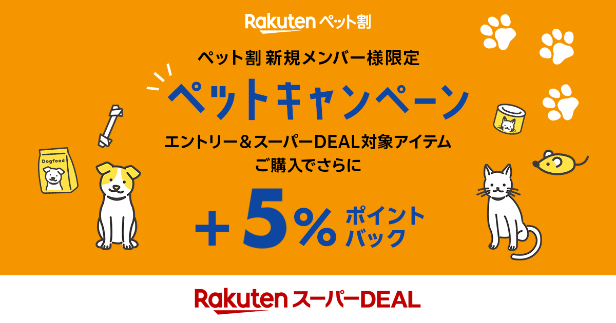 【楽天ペット割新規登録限定】エントリー+スーパーDEAL対象アイテムをご購入でさらに+5%ポイントバックキャンペーン!「楽天スーパーDEAL」は、楽天会員様限定の高ポイント還元サービスです。