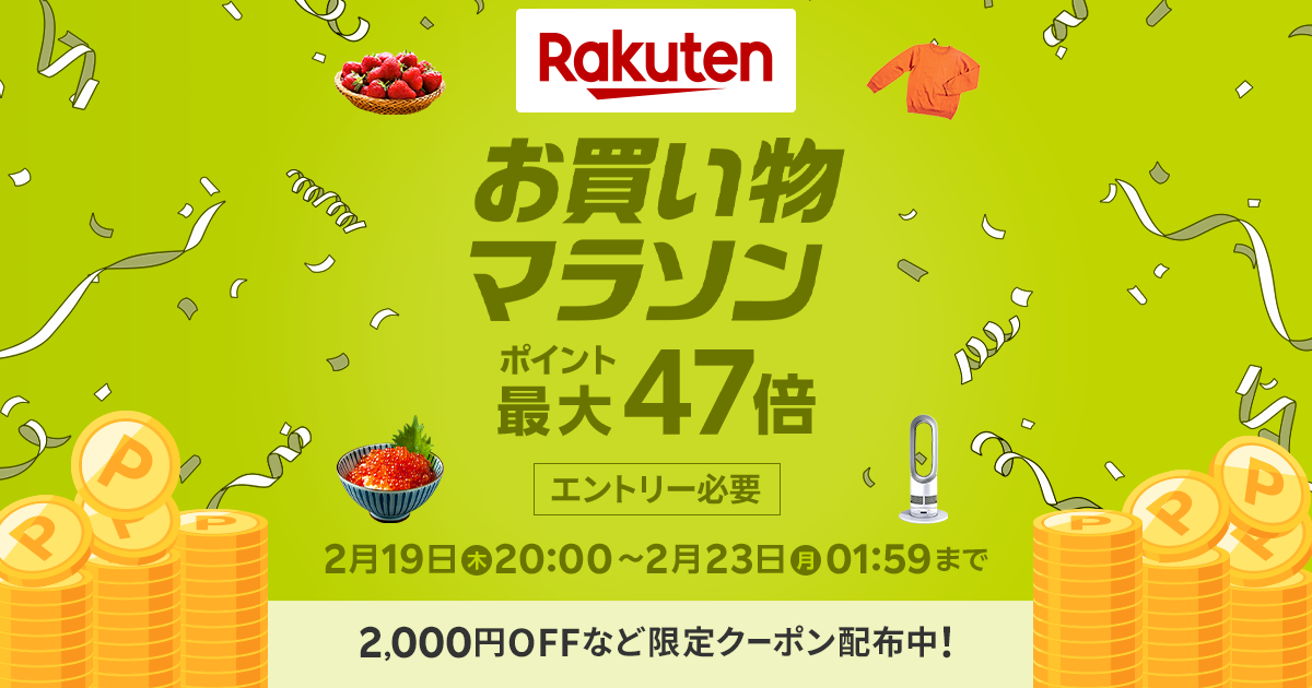 タイムSALE、割引クーポン、ポイントGETなどお買い物マラソンではお得な企画が満載!買えば買うほどポイントアップ!