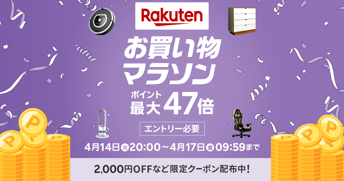 タイムSALE、割引クーポン、ポイントGETなどお買い物マラソンではお得な企画が満載!買えば買うほどポイントアップ!